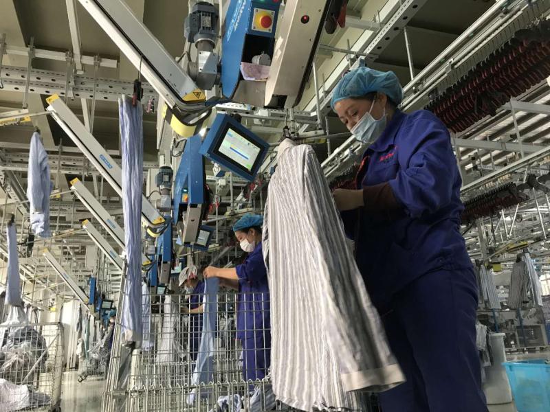 在公司新建的3500平方米廠房內,5條“洗滌龍”(隧道式洗衣機)和12臺隔離式洗衣機協同作業,并集中辟出專門隔離區域進行感染性織物處置,有效防止醫療感染性織物因洗滌和運輸產生的二次污染和交叉感染風險。