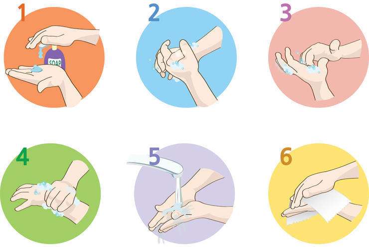 這里小編建議采用6步洗手法洗手即:首先用水沖洗手,用洗手液或香皂打泡沫,然后掌心相對,手指并攏揉搓掌心;接著雙手交換沿指縫相互搓擦;然后掌心相對,雙手交叉沿指縫相互摩擦;一手握著另一手大拇指旋轉搓擦,兩手交換進行;接下來彎曲各手指關節,在另一手掌心旋轉搓擦,兩手交換進行,后,搓洗手腕就結束了。